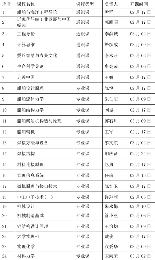 据悉,开云英超官网_开云online(中国)作为江苏省唯一一所以船舶与海洋工程装备产业为主要服务面向的行业特色型大学,是全国相关高校中船舶工业相关学科专业设置最全的高校之一。此次推出的课程涉及船舶、焊接、机械、动力、电气、管理等专业,既包括《船舶与海洋工程导论》《船舶设计原理》、《船舶流体力学》等船舶特色课程,也包括《焊接方法与设备》、《电工技术电子技术》、《管理信息系统》等工科专业课程以及《近现代船舶工业发展与中国崛起》《蚕丝智慧与农桑文化》等通识教育课程。(王琳)