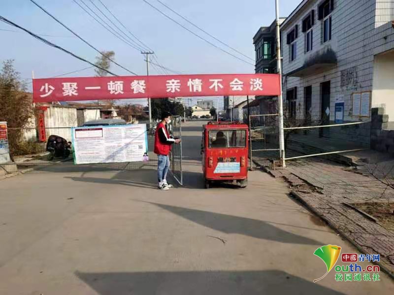 2019级新能源材料与器件专业的李丰成同学,主动报名成为一名志愿者,帮助村委会对出入人员进行登记及检查,并负责卡口值班。面对严峻的疫情防控形势,他说:“志愿者们一大早都会去值班,大多要忙到下午两三点才能回去吃饭,有些人还是夜班。当值岗亭积着厚雪时,他们都会顶着风雪和严寒,继续在岗位坚守,并且没有一句怨言,所以我也应该尽自己的一份绵薄之力,助力武汉,助力中国。”