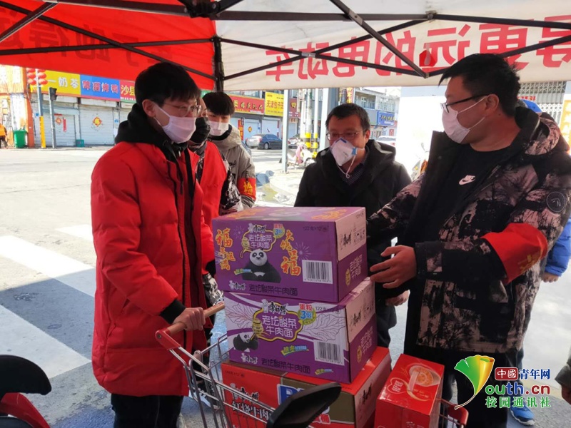 同班级的陈光同学于2月16日前往连云港市开发区朝阳镇朝东街防疫卡口处为防疫志愿者们送去了方便面及八宝粥等生活用品,希望能为志愿者们“加油充电”。