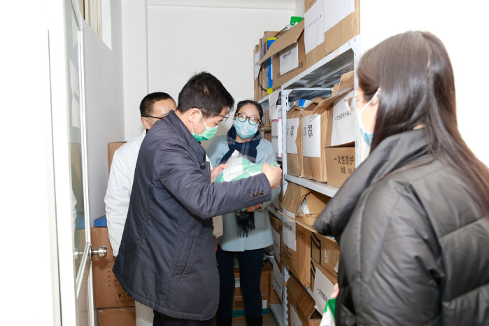 专家组成员仔细查看了防控工作的各类台账资料,并就“外防输入”、提前返镇(校)人员管理、师生员工发热人员的处置管理等方面进行了问询。随后,督察组现场查看了校门管控、隔离医学区以及防疫物资的储备情况。