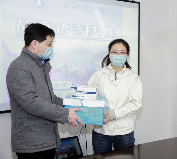 仪式上,姚双良代表学院对高秀老师致以崇高的敬意和衷心的感谢,并嘱咐一定要注意个人安全。胡爱祥总经理代表学校疫情防护工作组为高秀老师送上防护物资。