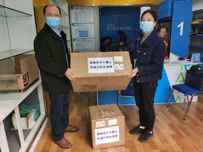家在江苏宜兴的杜逸雯得知江苏高校即将全面复课的消息后,第一时间联系上学院辅导员老师表达了助力学校防疫工作的意愿。她拿出自己的零花钱购买了口罩寄到学校,努力为母校抗击疫情贡献出自己的一份力量。据了解,杜逸雯还是宜兴市宜城街道一名抗击疫情的志愿者,由于亲历防疫物资极度紧缺的状态,所以一直记挂着学校。