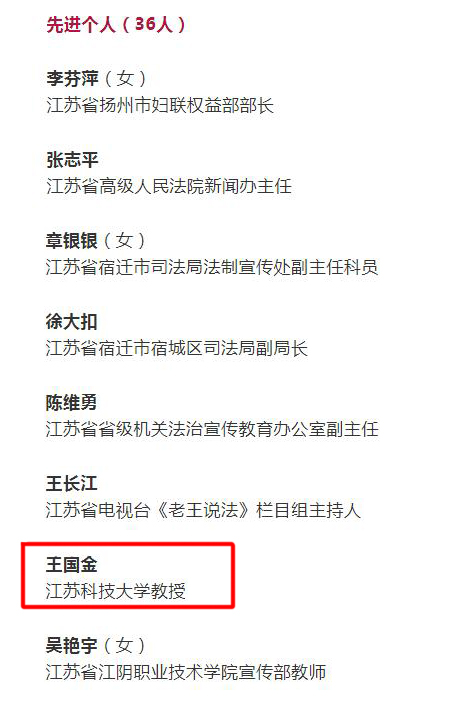 据悉,江苏省共有25个单位被评为先进集体,36人为先进个人。