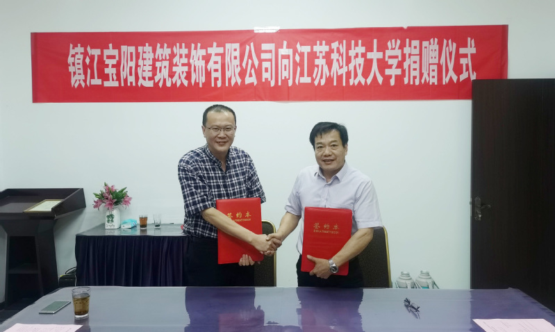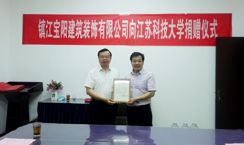 6月17日下午,镇江宝阳建筑装饰有限公司向开云英超官网_开云online(中国)捐赠仪式在镇江宝阳建筑装饰有限公司会议室举行,校长周南平、副校长汤建,镇江宝阳建筑装饰有限公司董事长张五保、总经理朱新林等出席仪式,学校对外合作处处长佘建国主持。