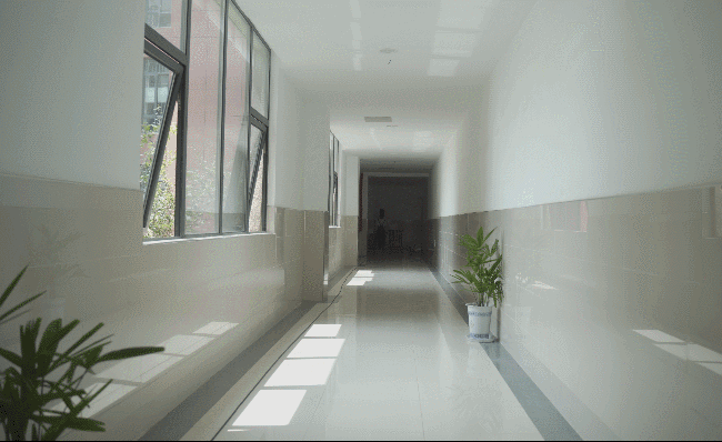 在新校区53号学生宿舍组团,一进门就是宿舍的人脸识别门禁系统,目前正在采集图像信息,通过红外线感应就能进出,后勤集团员工和工人师傅正在进行最后的安装调试和清洁整理,走廊两侧也摆上了绿植。
