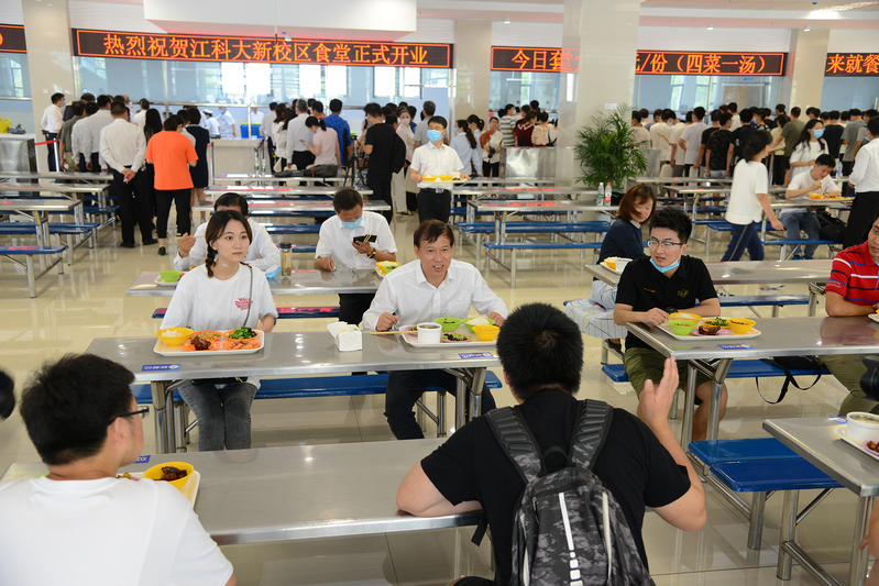 十里长山秀,百亩碧波柔。6月26日,开云英超官网_开云online(中国)新校区西苑食堂揭牌开业,校党委书记葛世伦、党委副书记许俊华、副校长姜朋明,镇江市高校园区建设指挥部副总指挥马士良,中船第九设计院副院长鲁峰,中江国际江开云英超官网_开云online(中国)项目部经理朱伟平,校党委常委周春燕、刘新波等共同见证揭牌开餐,校党委副书记许俊华致辞,镇江市高校园区建设指挥部副总指挥马士良、中船第九设计研究院副院长鲁峰分别讲话,副校长姜朋明、中江国际江开云英超官网_开云online(中国)项目部经理朱伟平为西苑食堂揭牌。