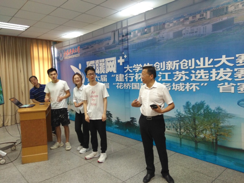 团队成员、人文学院公共事业管理2017级学生姚蓝在团队里主要负责路演和答辩,印象特别深的就是前几天在扬州集训,团队成员和老师每天都在不停地答辩、修改,一连五天都是早上六七点起床,凌晨一两点睡觉,老师也是一直陪着学生们一起,不断改进,都很辛苦。计算机学院2017级物联网工程专业的李翠锋在项目中主要负责项目团队的统筹和技术,回想在扬州集训的时候,即便连着吃泡面,感觉仍然很好,大家齐心协力比什么都强。
