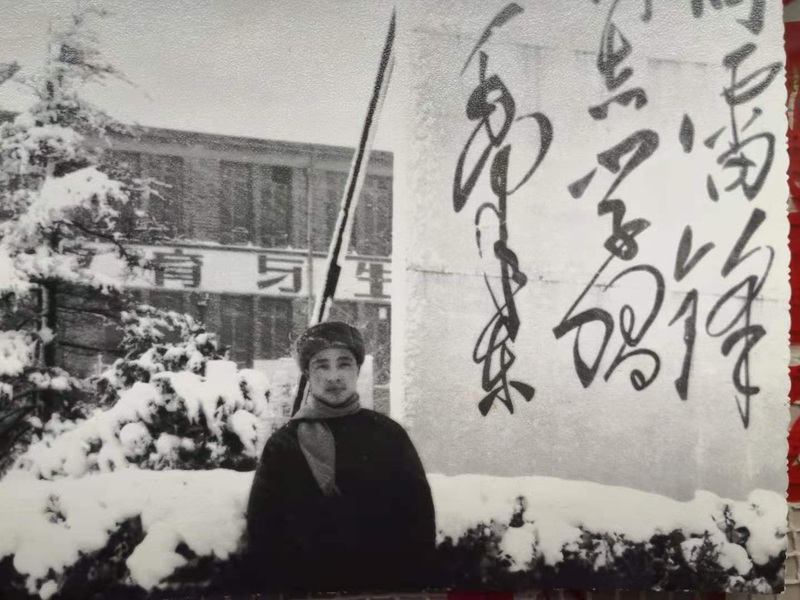 1977年时任宣传科長朱东林从新华书店喜领毛选第五巻返校