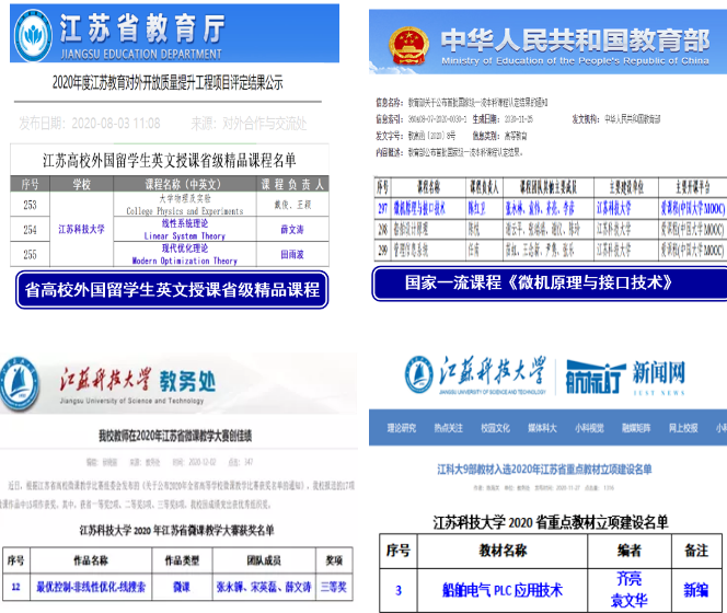 坚持“以本为本”,把人才培养的质量和效果作为检验一切工作的根本标准。坚持依托行业、特色办学,以工程专业认证为抓手,积极探索本科生创新、工程能力培养体系构建、专业核心课程体系改革、人才培养方案重构、分类培养模式探索和校企协同育人。获批国家一流课程1门,省一流课程1门,省留学生全英文授课省精级品课程2门。新增省重点教材1部,省微课教学三等奖1项。获教育部产学合作协同育人项目1项。获省优秀本科毕业设计一等奖、二等奖、三等奖各1项,省优秀本科毕业设计团队1个。获批江苏省研究生科研创新计划项目和研究生实践创新项目21项。水声工程通过新专业评估,完成自动化、电子信息工程2个专业的认证自评报告。国家级教学成果奖培育:总结撰写“铸大国重器 育一流人才 —— 卓越船舶工程师培养的开云英超官网_开云online(中国)实践”。成立了11个教学团队—— 依托团队开展教学改革研究,课程思政建设。