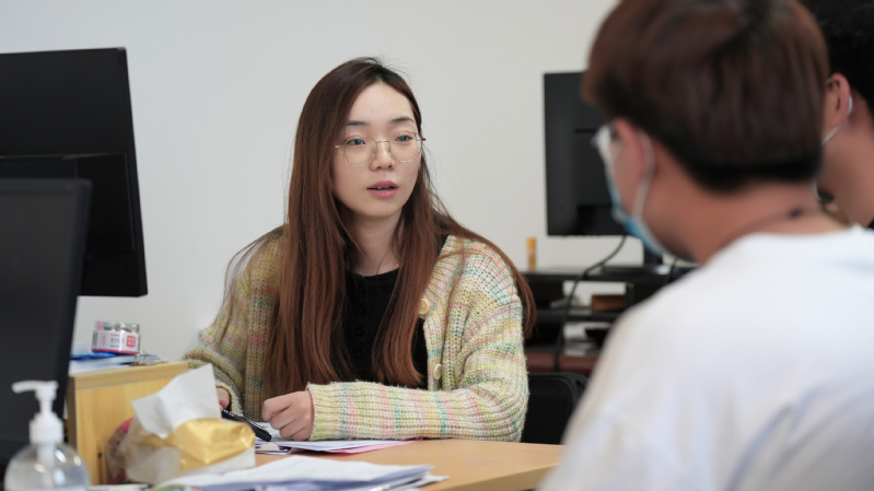 电子信息学院辅导员曹梦瑶同样也是同学们的“知心姐姐”。学校食堂在封闭管理期间不能堂食,曹梦瑶的办公室也离学生公寓较远,为了便于与学生展开谈话,曹梦瑶买好饭带到学生宿舍,在那里“速战速决”后再与学生促膝长谈。