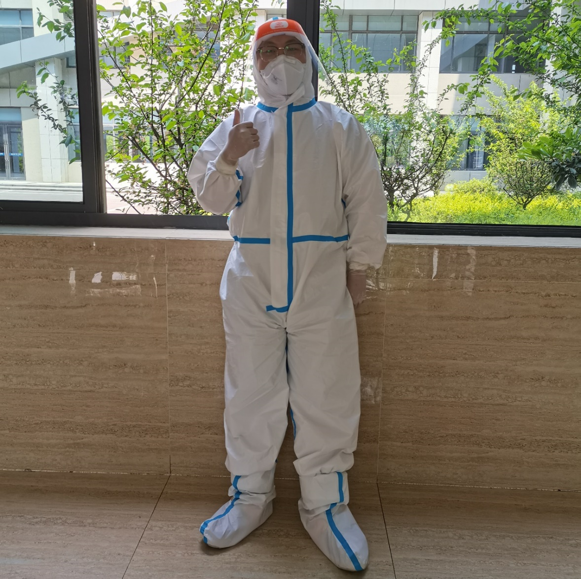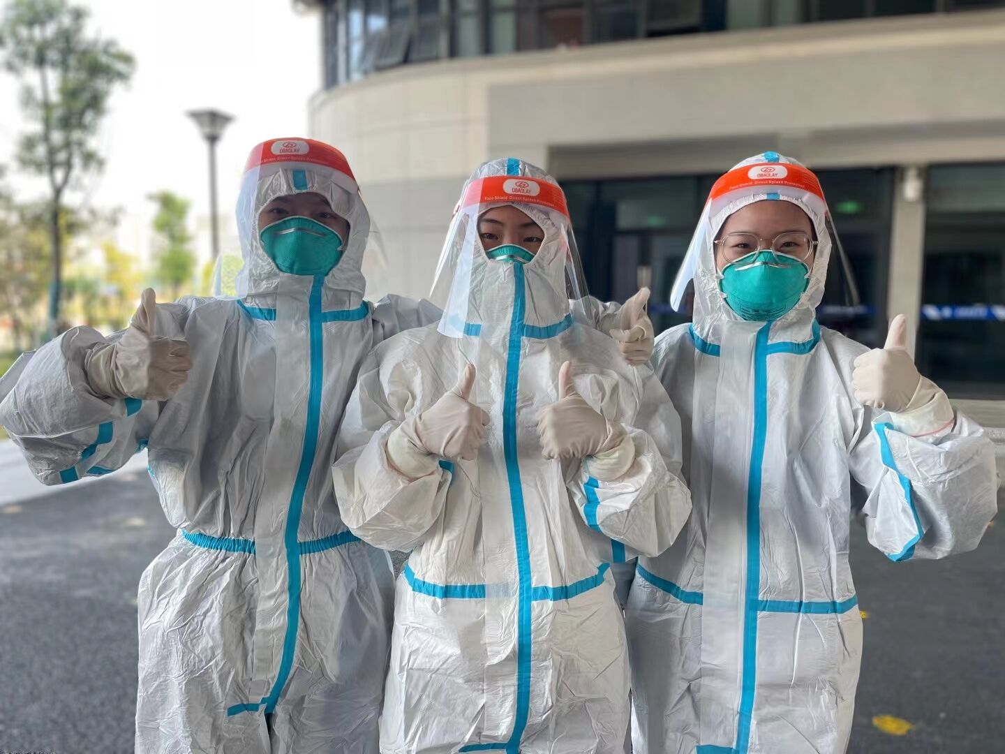“4月12日那天,我有幸成为了一个大白。”研支团的吕湘一同学很自豪,“一穿上防护服就感觉很热,如果穿着一直走动,就会不停流汗,因为防护服密封性非常好,几乎不透气。”生命中有了“大白”体验后,吕湘一更加理解了医护人员的辛勤和不易。