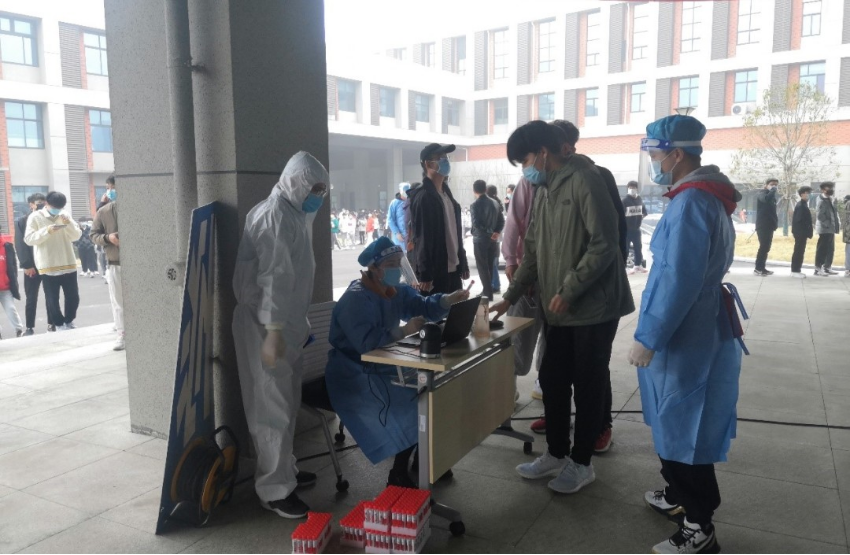 作为“大白”的一员,李金澄在经历了短暂培训之后,便参与到全员核酸信息收集工作中。“我们用提前下载好的镇江采集手机app扫描同学们的身份证,或者镇合意中的核酸采样码收集信息。”信息采集一坐就是一上午,两个多小时的连续重复动作,平均每人500多名学生信息的采集,使得每一位“大白”志愿者都倍感疲累。