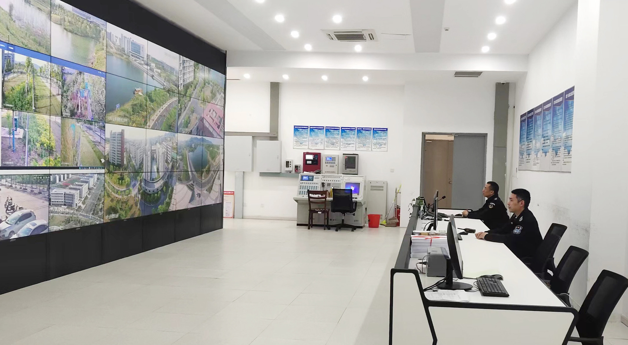 “你好?请问是监控中心吗?我们这边宿舍发生了火灾,能派人来灭火吗?”一通电话打破了监控中心的平静,接到报警电话的监控中心保安班长陈坚立马赶到现场,在确保人员安全之后,拿着防毒面具就冲入现场进行初期扑救。除了应对火灾等突发情况,疫情期间,监控中心还要监督校内与外界的接触,防止外来人员的进入。“学校有多大,我们的视线范围就有多大。”每天上班,陈坚都会将重点区域的监控反复查看。当看到学生与外卖员接触或翻墙出校的情况,监控中心立即与巡逻班联系,及时制止不当行为。“同学们喜欢在湖边散步、小憩,有的时候离湖水太近,我们也会与巡逻班联系,让他们去劝导学生不要离湖水太近。”