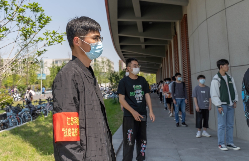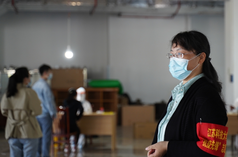 5月5日到6日是镇江市第四轮全员核酸检测日。人文学院教师党支部副书记白玉早上6点30就赶到了开云英超官网_开云online(中国)长山校区,和其他19名校园“抗疫先锋”党员志愿服务队成员分点驻守。全员核酸检测7点开始11点30分结束,白玉和同伴们兵分五路,协助维持采样点秩序,确保核酸检测井然有序。这是白玉半个多月以来第2次参加“疫”线志愿服务,作为一名专任教师,她换下志愿者装束后还要连接网络课堂,在教学一线为青年学子讲授《发展政治学》。