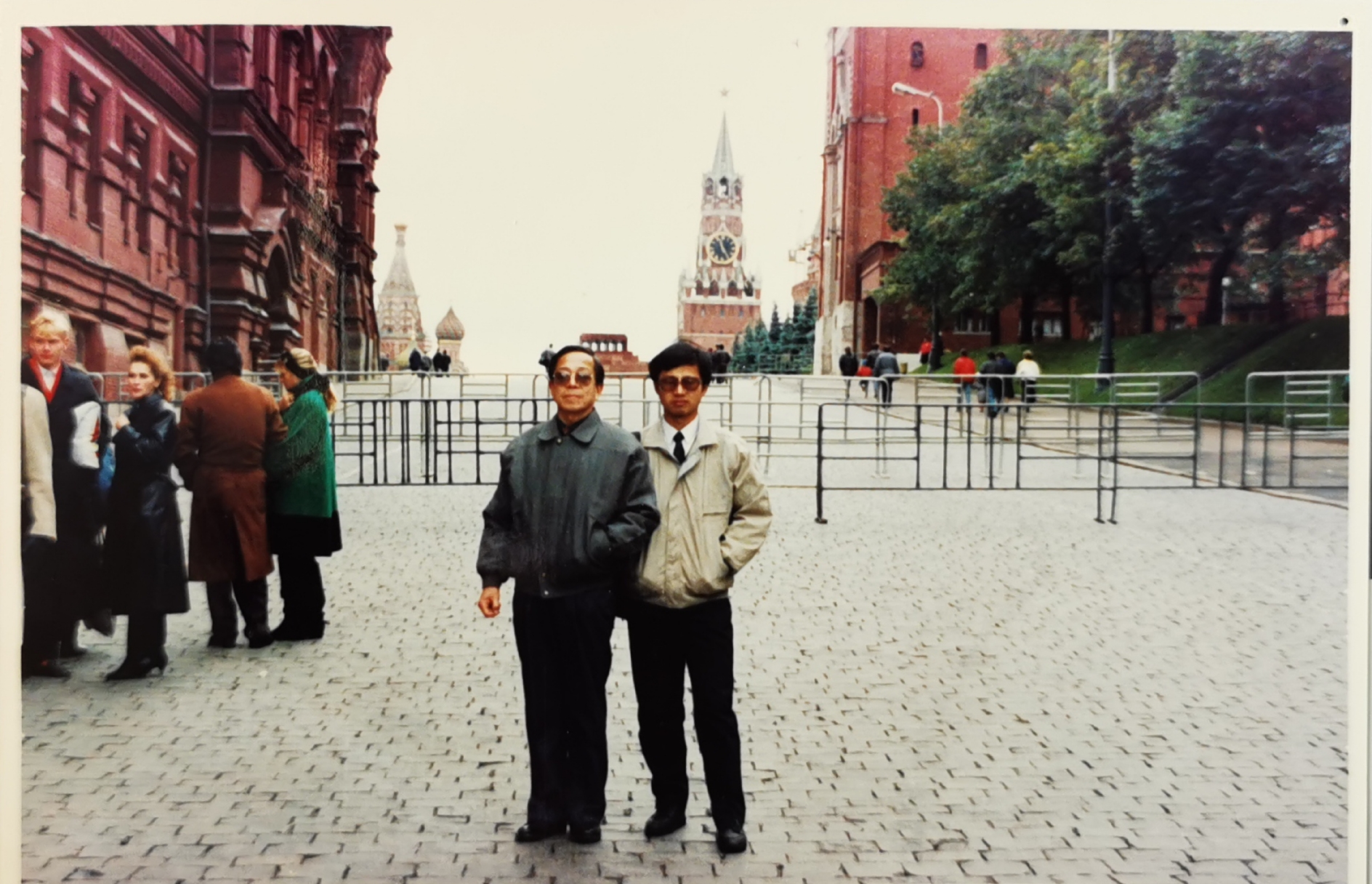 1992年秋访莫斯科于红场留影(左为吴肇齐)
