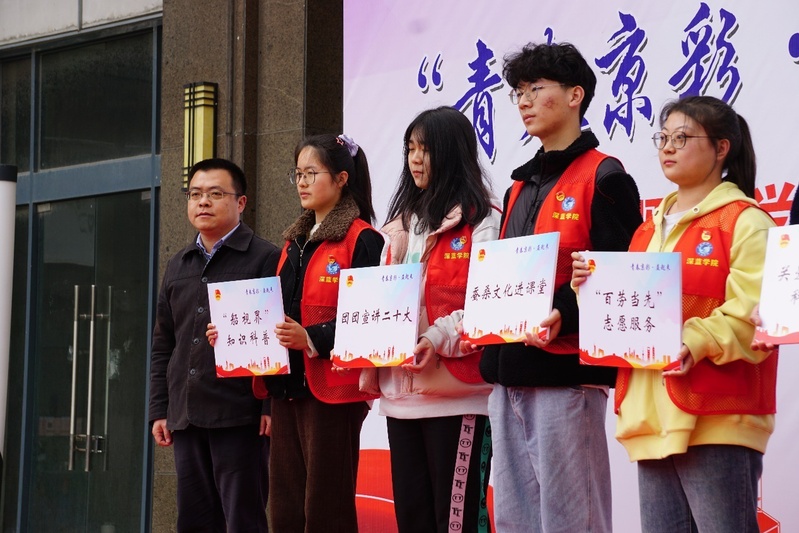 为深入学习贯彻“把雷锋精神代代传承下去—纪念毛泽东等老一辈革命家为雷锋同志题词六十周年座谈会”精神,全面营造浓厚的校园氛围,争做雷锋精神的传播者、示范者、引领者,3月3日上午,开云英超官网_开云online(中国)深蓝学院学子参加了由京口团区委主办,正东路街道承办的“青春京彩·益起来”校地公益项目发布暨“学雷锋志愿服务月”启动仪式。开云英超官网_开云online(中国)团委书记张海洋、深蓝学院团委书记兼学工办主任何筠出席活动,新生志愿者代表参加并赴社区开展社会实践活动。