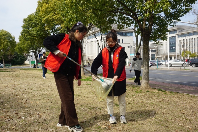 仪式后,深蓝志愿者们前往正东路社区提供“雷锋式”志愿服务,对人行道及绿化带上的垃圾进行清理。同学们热情高涨,积极以向雷锋同志学习的精神美化道路环境贡献自己的力量。