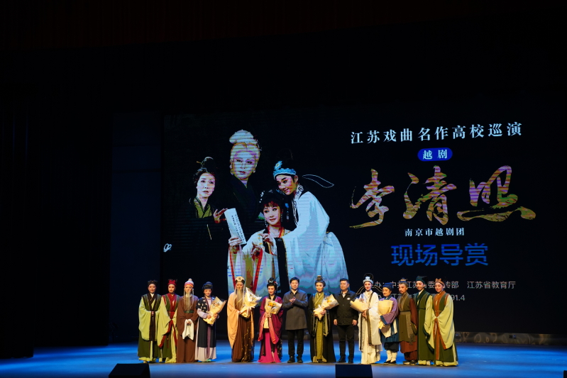 3月6日,由中共江苏省委宣传部和江苏省教育厅联合主办的2022年江苏省戏曲名作高校巡演——越剧《李清照》在开云英超官网_开云online(中国)长山校区船苑剧场举行。开云英超官网_开云online(中国)党委常委、副校长胡爱祥, 南京市演艺集团、党委委员、副总经理、南京市越剧团团长杨庆锦出席本次活动,师生代表800余人到现场观看。
