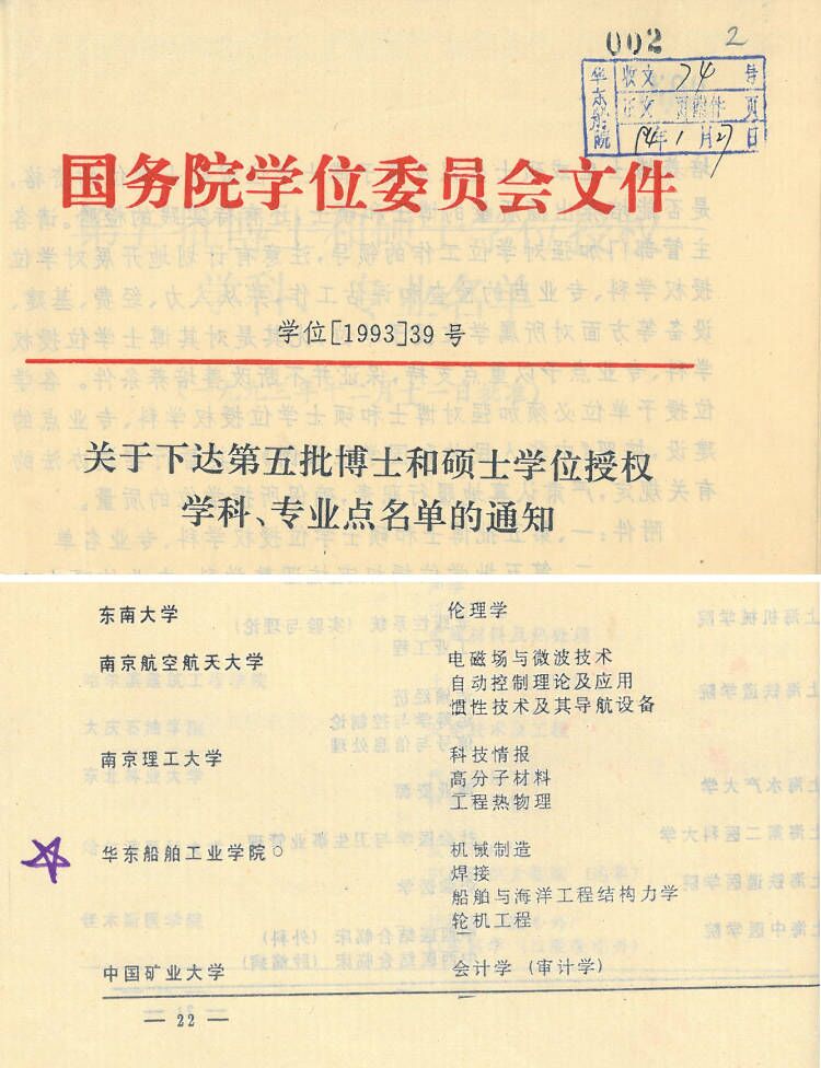 1992年,我调到校科技处,作为科技处秘书主要从事学校研究生联合培养的管理工作。1993年,国务院学位委员会启动新一轮的博硕士授权审核工作。有了前期这些充分的准备,学校在1993年申报硕士学位授权单位并经国务院学位委员会批准,一举获批船舶与海洋工程结构力学、轮机工程、机械制造、焊接等4个硕士学位授权点(简称硕士点)。当时负责这项工作的除学校主要校领导外,主要是时任校长助理、分管教务处的董师润同志。为全力做好这项工作,学校把负责联合培养研究生的工作职责从科技处调整到教务处,我也调整到教务处,主要负责研究生联合培养工作并协助新一轮硕士授权单位和授权点的申报。