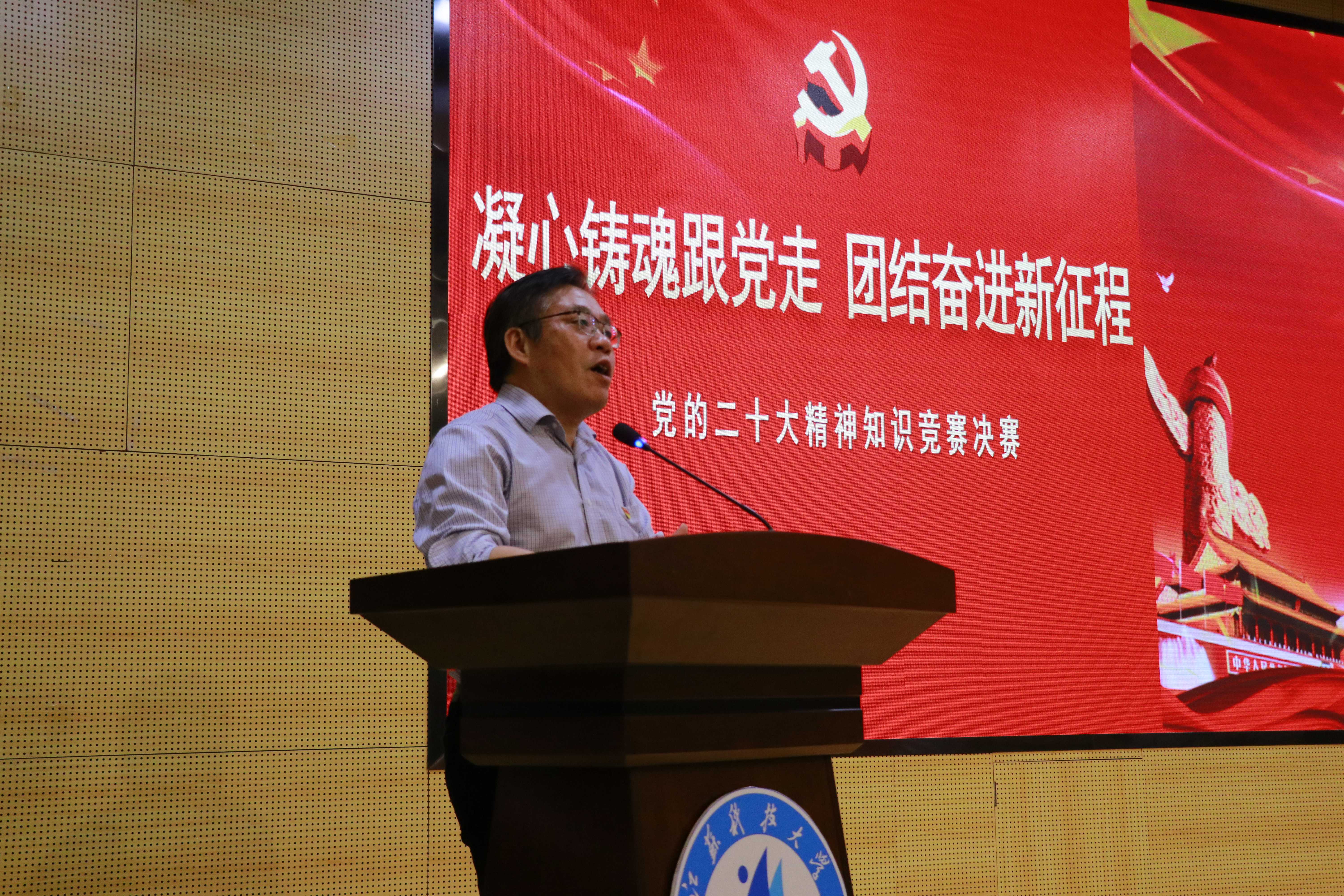 赛后,党务工作专员姚允柱对比赛进行了点评。他高度肯定了这次比赛的重要意义,赞许了选手们学习党的二十大精神的热情,希望广大同学继续深入学习贯彻党的二十大精神,用党的创新理论武装自己,将学习的成效转化为实干的动力,为学校事业发展贡献青春的力量。