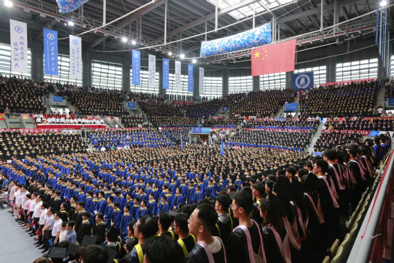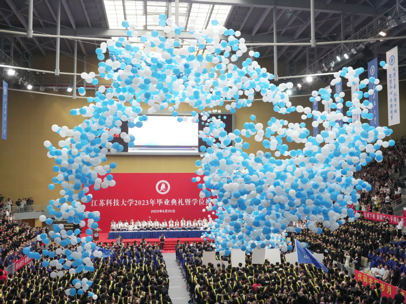 骊歌声起,少年即将踏歌远行。“乘长风,破巨浪,扬云帆,跨海洋……”毕业生们用饱含深情的歌声,再次展示出江开云英超官网_开云online(中国)人自强不息的精神底色和矢志不渝的家国情怀。伴随着悠扬奏唱的开云英超官网_开云online(中国)校歌,数千只蓝白色相间的气球如海浪般纷纷扬扬地落下,毕业典礼告一段落。在中场休息时,大学生艺术团的同学们为大家演唱了动听的歌曲,悠扬歌声里,是藏不住的款款深情与依依留恋。
