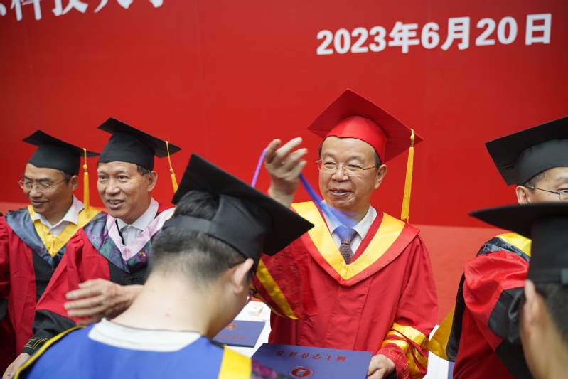 校党委常委、副校长任南宣读《关于准予2023届本科学生毕业的决定》和《关于授予2023届本科毕业生学士学位的决定》。副校长王加友宣读《关于准予2023届博士、硕士研究生毕业的决定》和《关于授予2023届研究生博士学位、硕士学位的决定》。校党委副书记、副校长景旭文宣读《关于表彰2023届本科生、研究生“优秀毕业生”的决定》。主席台的领导和导师们为毕业生代表发放毕业证书,为优秀毕业生颁发荣誉证书、赠送毕业纪念品。