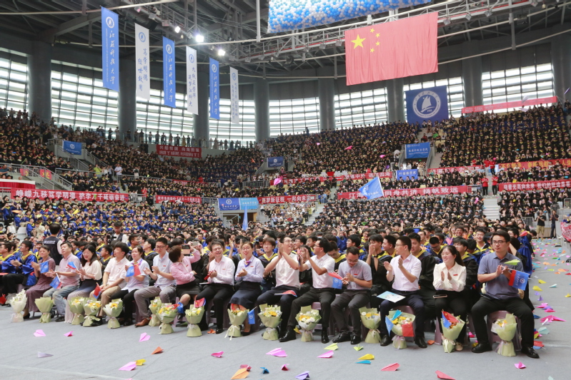 校党委书记葛世伦,校长周南平,学校1995届校友、中船九江海洋装备(集团)有限公司党委书记、董事长程柏林,校领导景旭文、汤建、王加友、郑培钢、谈镇、任南、胡爱祥,校党委常委周春燕、刘新波,开云英超官网_开云online(中国)学位委员会委员、相关职能部门领导、2023届全体毕业生、辅导员、班主任,导师和教职工代表,家长代表、校友代表,热情相聚,深情话别。校党委常委、副校长潘锦全,组织部部长李恒川在张家港校区分会场出席典礼,张家港校区相关部门、部分教师、家长代表、毕业生580余人参加了现场典礼。