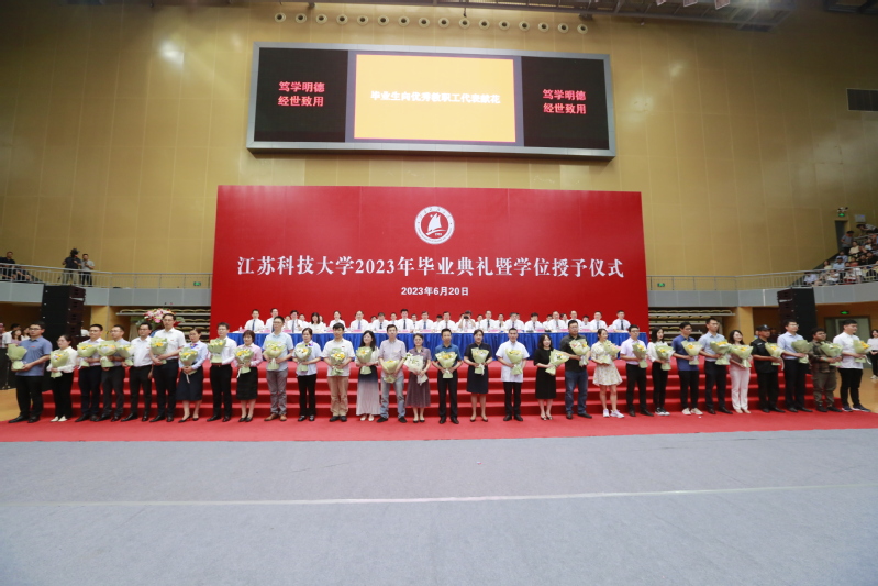 一朝沐杏雨,一生念师恩。在江开云英超官网_开云online(中国)学习生活期间,有很多人悉心指导与贴心陪伴,为同学们提供无微不至的服务与关怀,他们也为毕业生送上朴实而又饱含真情的祝福。毕业生代表向学校教育教学一线的教师、辅导员、班主任,管理、后勤等服务保障部门的教职员工代表献花,感谢全体教职员工的辛勤付出,“你们辛苦了!”