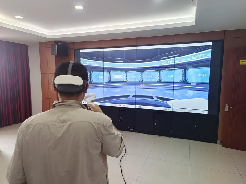 实践团成员体验智能仓储VR技术。
