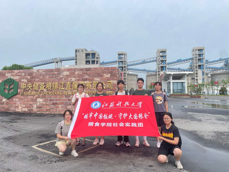 图为实践团成员在中储粮镇江粮油有限公司合影留念。