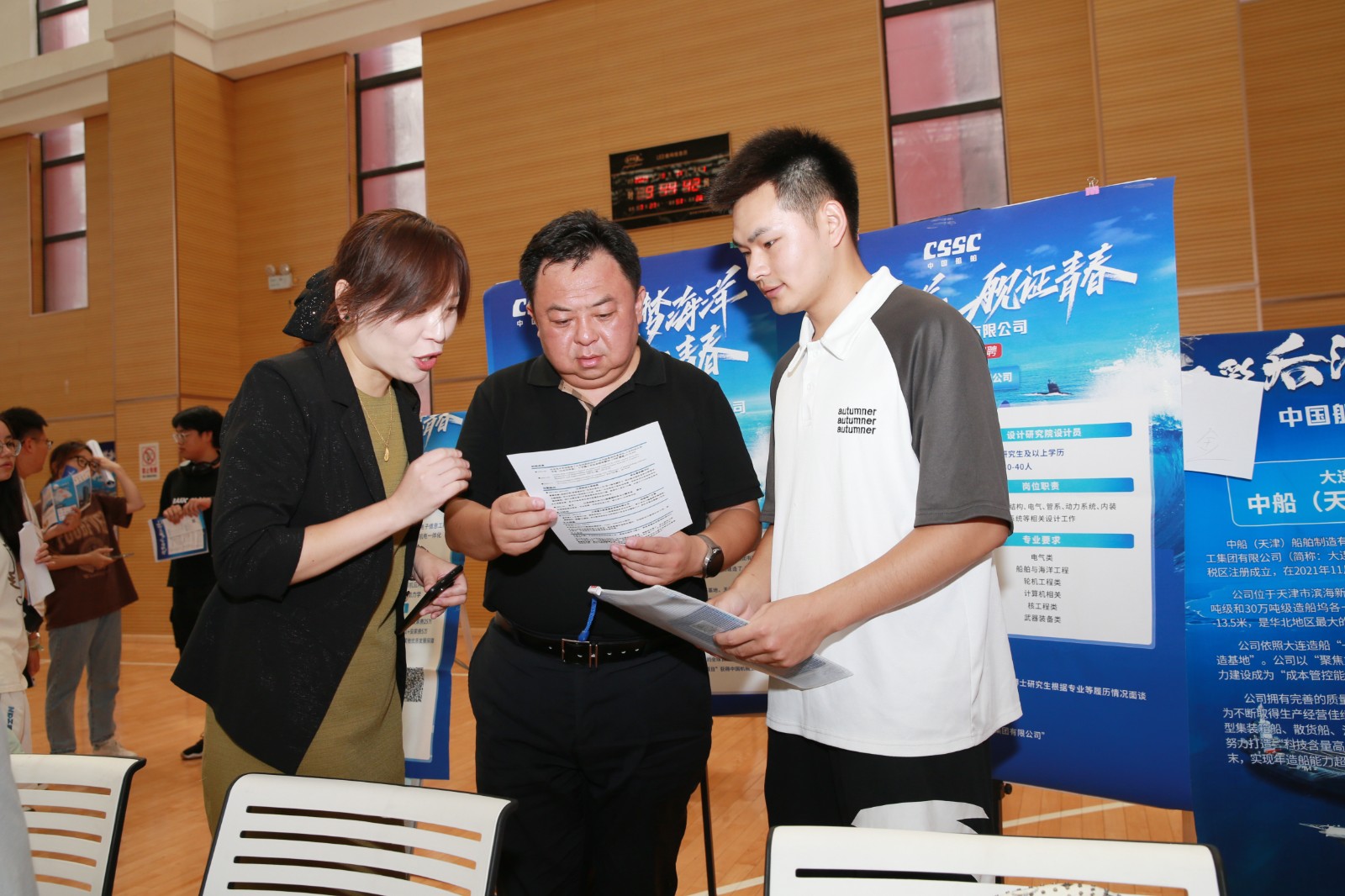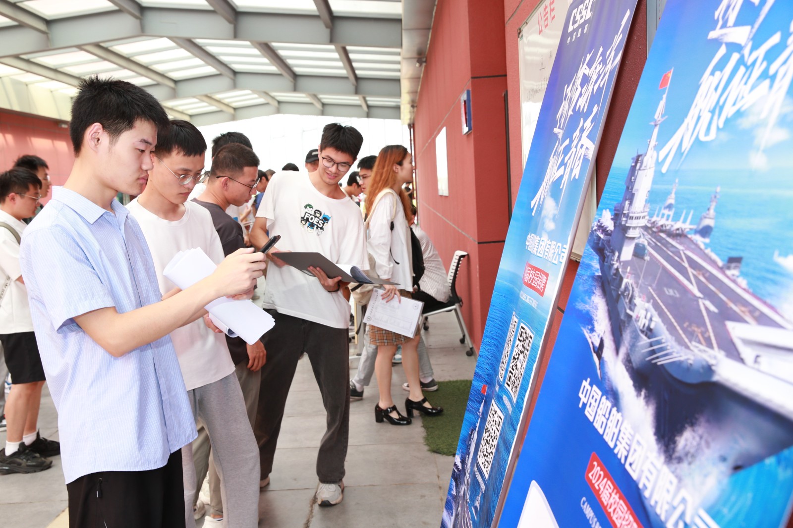 本次招聘会共54家用人单位参会,专业需求覆盖各个学院,吸引了近4000名应届毕业生前来挑选岗位。同学们积极与用人单位代表交流,踊跃投递简历,407名毕业生现场达成了初步就业意向。招聘会前期,各学院主动与企业对接,广船国际、沪东中华、黄埔文冲、第七〇八研究所等单位向重点需求专业的学生做宣讲,宣讲会有效搭建了单位与毕业生们之间的交流平台,“开云英超官网_开云online(中国)的培养方向和我们企业需求相匹配,学生专业基础扎实,培养潜力大。学生们投递热情也很高,已经收到了一百来份简历。”中船黄埔文冲船舶有限公司人力资源部赵李君介绍道。