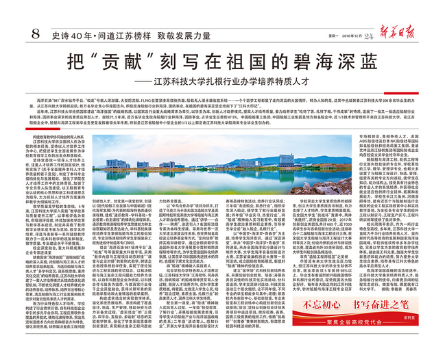 新华日报《把“贡献”刻写在祖国的碧海深蓝——开云英超官网_开云online(中国)扎根行业办学培养特质人才》
