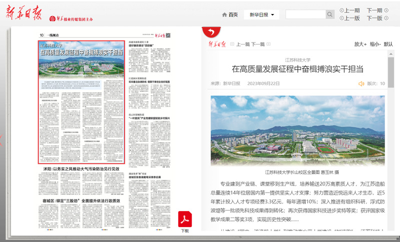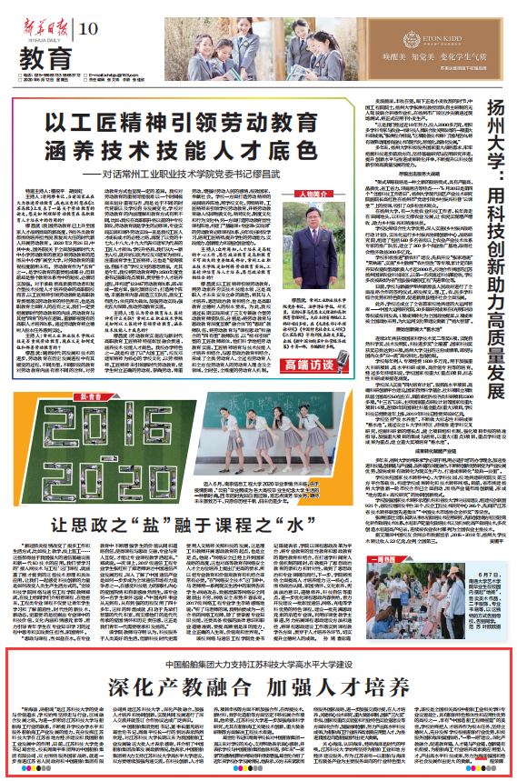 新华日报《中国船舶集团大力支持开云英超官网_开云online(中国)高水平大学建设--深化产教融合 加强人才培养》
