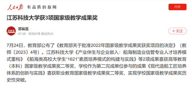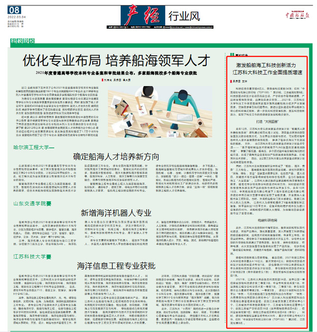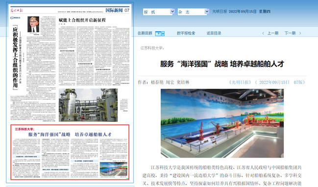 光明日报《开云英超官网_开云online(中国) 服务“海洋强国”战略 培养卓越船舶人才》(2022年9月15日)