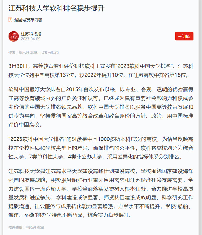 学习强国《开云英超官网_开云online(中国)软科排名稳步提升》(2023年4月9日)