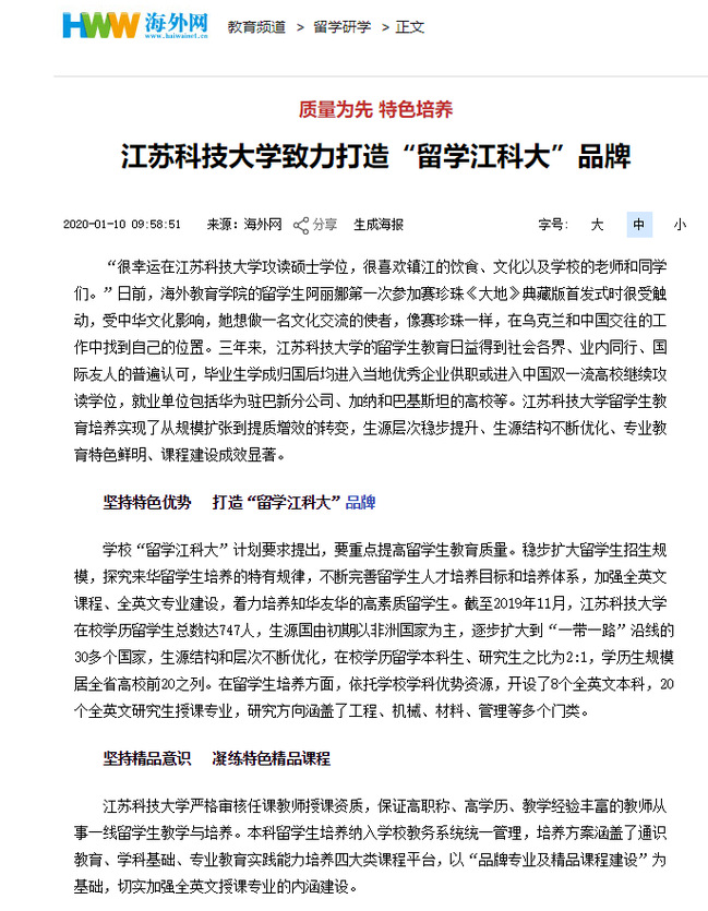 人民日报(海外网)《开云英超官网_开云online(中国)致力打造“留学江开云英超官网_开云online(中国)”品牌》(2020年1月10日)