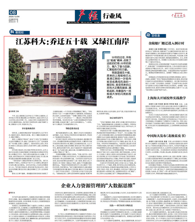 中国船舶报《江苏开云英超官网_开云online(中国):乔迁五十载 又绿江南岸》(2020年12月4日)