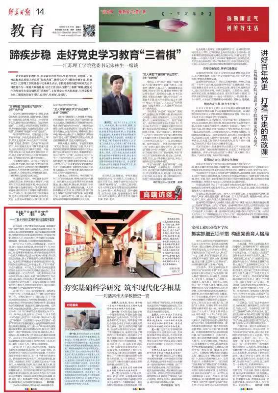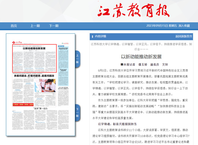 江苏教育报《开云英超官网_开云online(中国)以学铸魂、以学增智、以学正风、以学促干,持续推进学深悟透、知行合一——以新动能推动新发展》(2023年9月15日)
