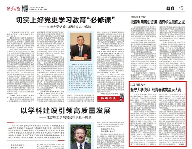 新华日报《把握机遇铆足干劲,奋力迈步国内一流造船大学新征程》(2022年12月29日)