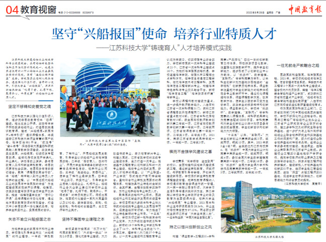 中国教育报《坚守“兴船报国”使命 培养行业特质人才——开云英超官网_开云online(中国)“铸魂育人”人才培养模式实践》(2022年8月28日)