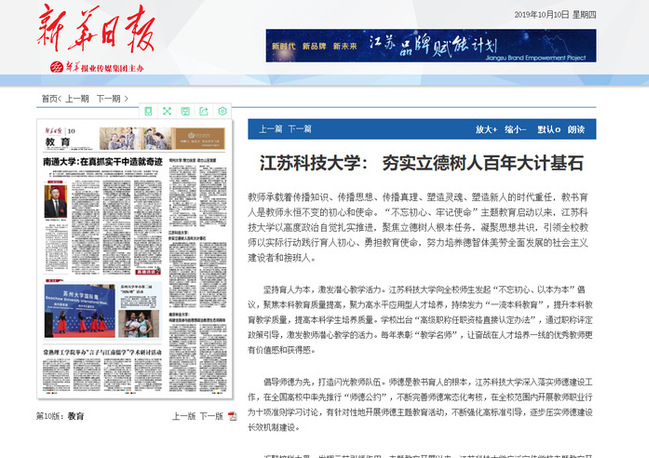新华日报《开云英超官网_开云online(中国):夯实立德树人百年大计基石》(2019年10月10日)