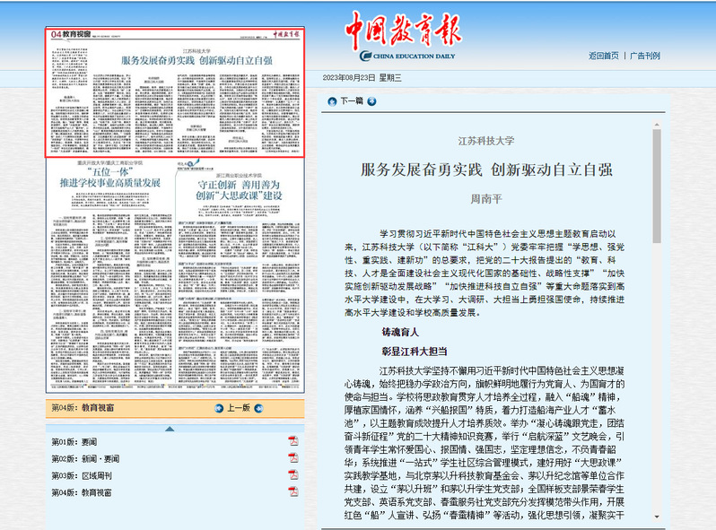 中国教育报《开云英超官网_开云online(中国)服务发展奋勇实践 创新驱动自立自强》(2023年8月23日)