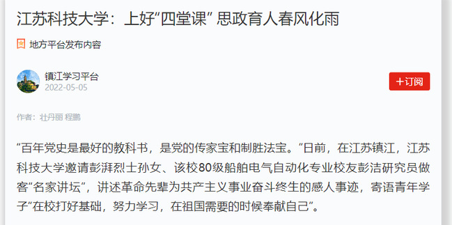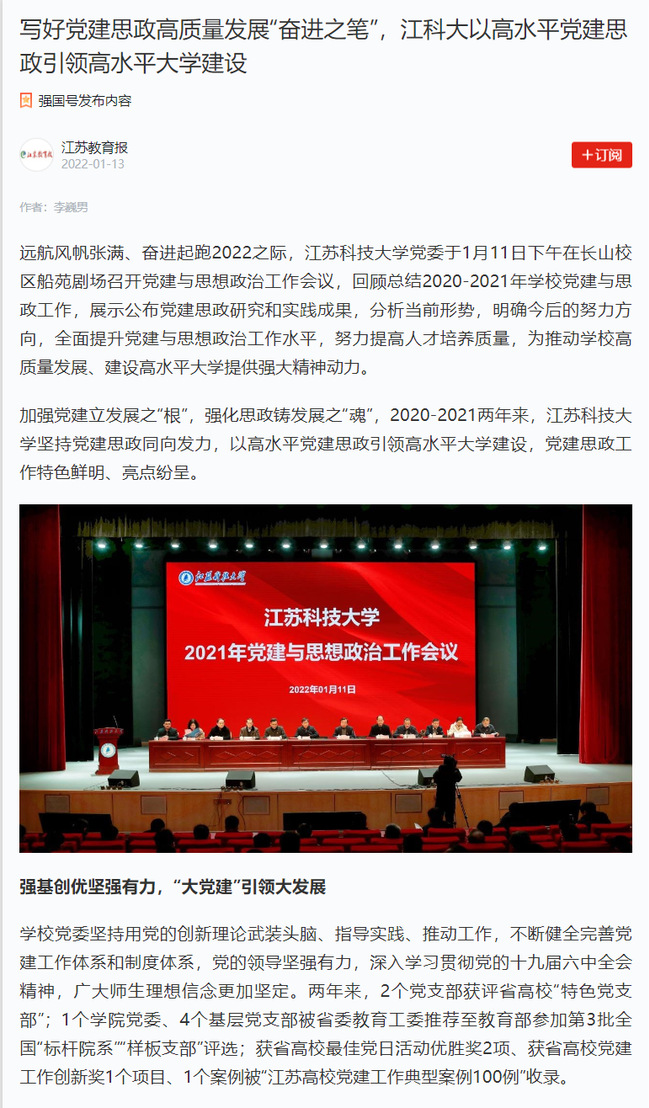 学习强国《写好党建思政高质量发展“奋进之笔”,江开云英超官网_开云online(中国)以高水平党建思政引领高水平大学建设》(2022年1月13日)
