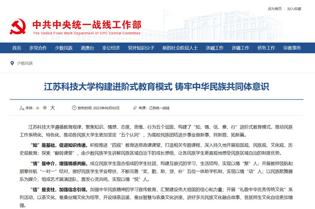 中共中央统一战线工作部《开云英超官网_开云online(中国)构建进阶式教育模式铸牢中华民族共同体意识》