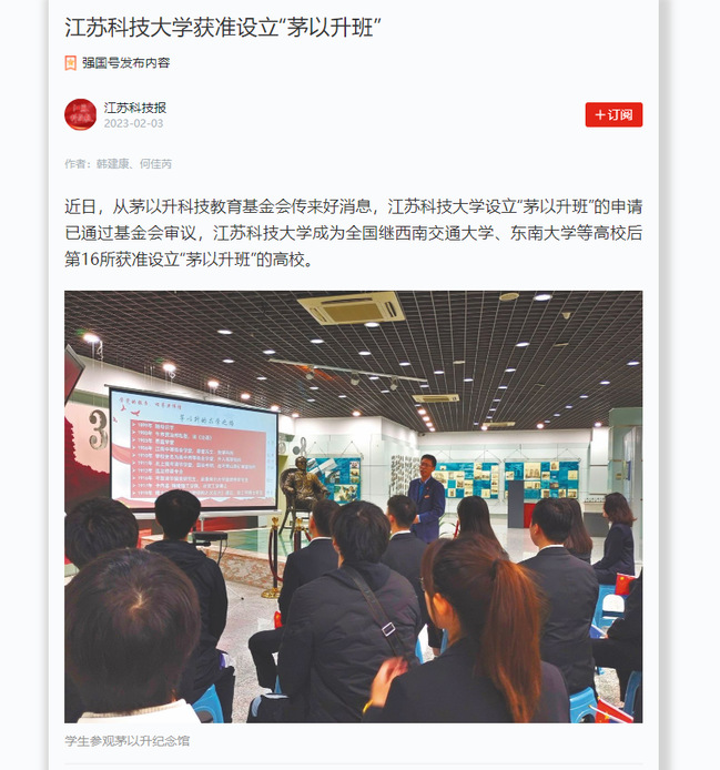 学习强国《开云英超官网_开云online(中国)获准设立“茅以升班”》(2023年2月3日)