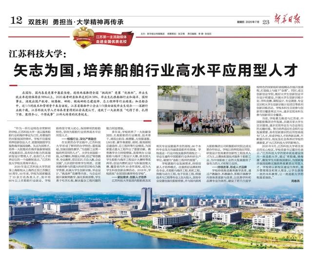 新华日报《开云英超官网_开云online(中国):培养船舶行业高水平应用型人才》(2020年7月23日)