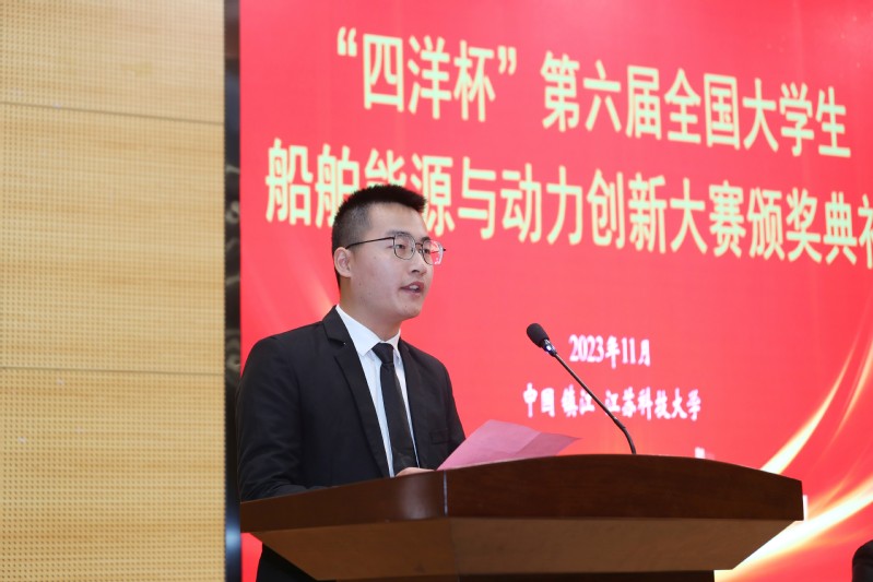 中山大学赵尚飞作为学生代表发言,他表示在大赛中见证了许多优秀的作品、创意和团队,每一次的汇聚都是对船海精神的赞颂。中国人民解放军陆军军事交通学院镇江校区王静老师作为优秀指导教师代表发言,他表示在各方的大力支持和指导下大赛已经成为了全国船舶动力领域大学生展示聪明才智,创作激情的舞台,更是展现各高校学生科学素养、培养成效的平台,今后将一如既往地关注、支持和积极参与。