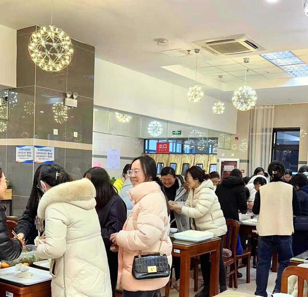 在“新春迎福瑞”系列活动中,为迎接中国传统节日“腊八节”,学院工会组织全体教职工在东苑食堂三楼欢聚,在包饺子过程中,有一手就能捏成“元宝”的,有捏成六褶对称的,还有捏成花边的……人多力量大,当一盘盘热气腾腾的饺子、一碗碗营养美味的腊八粥摆满了桌,家的味道和温馨洋溢在大家的其乐融融与欢声笑语中。