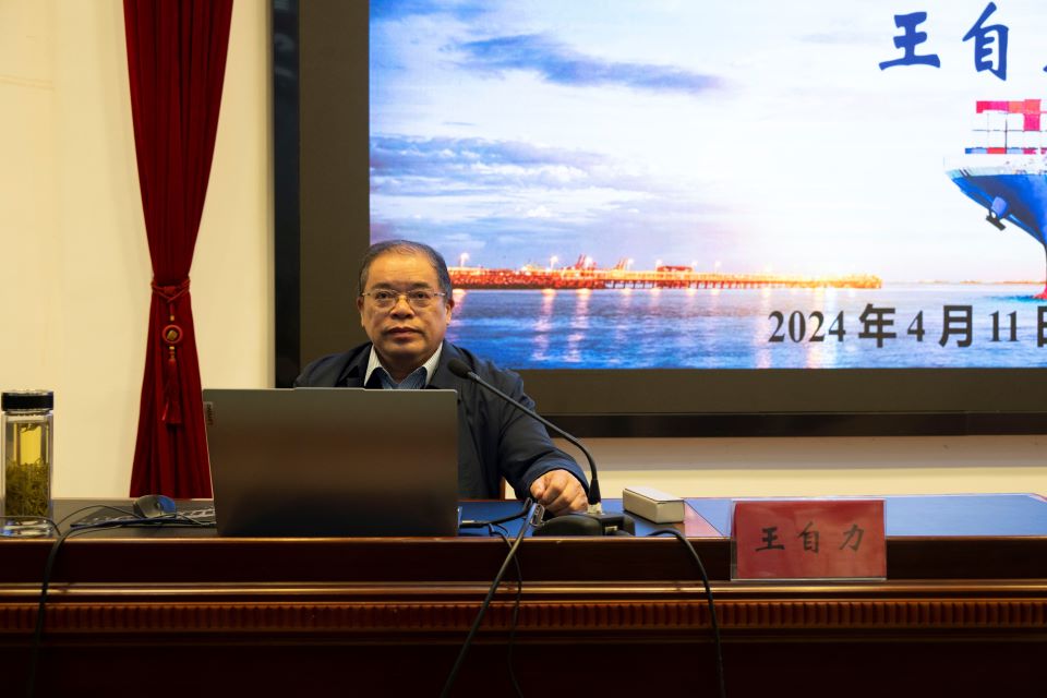 跟同学们交流现代中国海洋的崛起与腾飞时,王教授从海洋军事发展、海洋科技发展和海洋经济发展三个维度向同学们进行了系统而翔实的阐述。他向在座同学展示了我国海洋事业发展的诸多标志性成果,引领同学们更加直观地了解了现代中国海洋军事、科技和海洋经济的蓬勃发展现状。王教授特别强调:“正是由于有中国共产党的坚强领导,中国才实现从‘有海无防’的落后历史到完成建设强大海防的重大转变,强大的海洋军事正为我国的‘蓝水梦’‘中国梦’保驾护航。”