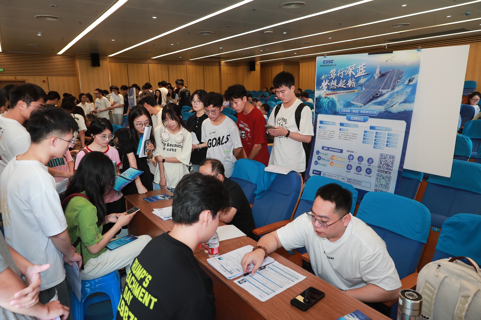 9月14日,我校顺利举办中国船舶集团2025届毕业生专场招聘会。本次招聘会共32家用人单位参会,企业提供岗位与学校毕业生专业匹配度高,毕业生参与度认可度高,吸引了3000多名毕业生的积极参与。招聘会现场人头攒动,气氛热烈,同学们积极与用人单位代表交流,踊跃投递简历,228名毕业生现场达成了初步就业意向,现场签约88人。